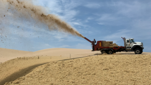 “What we do is we put a cover of hay on the ground and then we seed native dune seed and, as well as sterile cereal grain for something to germinate quickly to hold the sand down,” explained Jon O’Brien, Oceano Dunes District Superintendent.